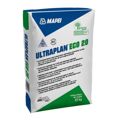 Ultraplan Eco 20 Mapei αυτοεπιπεδούμενο ρητινούχο επισκευαστικό τσιμεντοκονίαμα εξομάλυνσης επιφανειών κάλυψης από 0,1mm μέχρι 10mm.xαρακτηριστικά:To αυτοεπιπεδούμενο ισοπεδωτικό τσιμεντοκονομιαμα είναι υλικό εξομάλυνσης υπερταχείας ξήρανσης με πολύ χαμηλή εκπομπή πτητικών οργανικών ουσιών (VO..