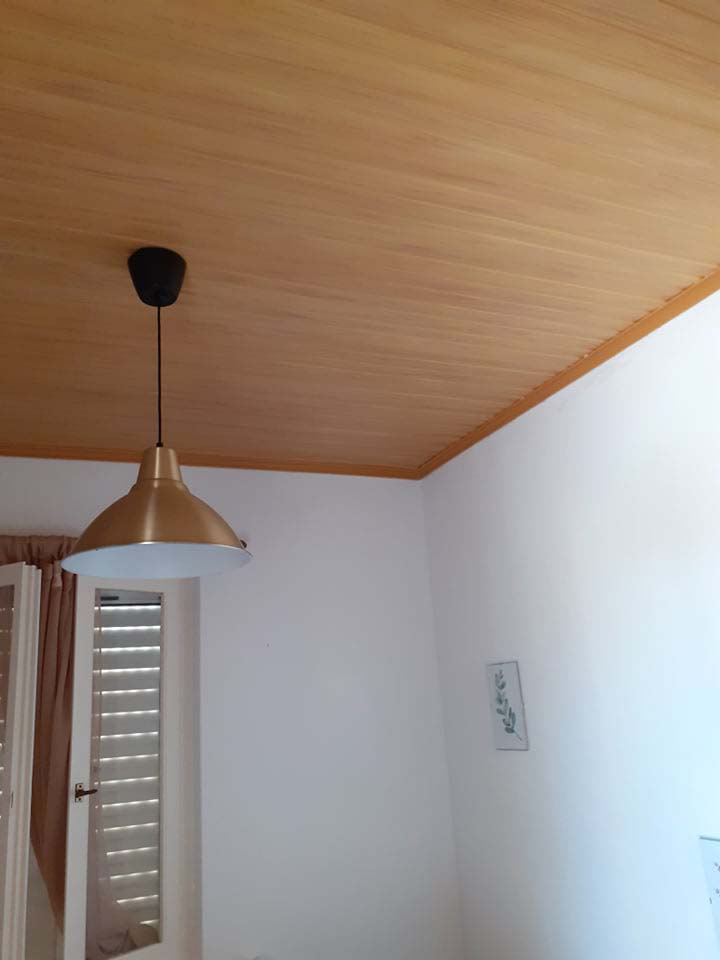 Στις παρακάτω φωτογραφίες φαίνονται τα στάδια αποκατάστασης της ψευδοροφής πριν και μετά την επένδυση με πλαστικό ραμποτέ.